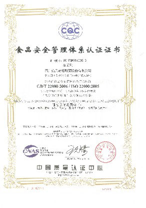 食品安全管理體系認(rèn)證證書